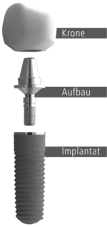 - Ein Implantat ist meist aus Titan, einem sehr gut verträglichen Metall.